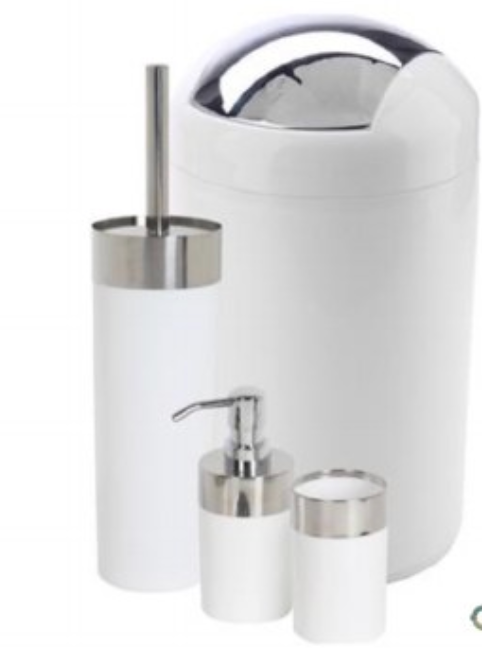 AtHome Bathroom Set- Bin, Brush, Dispenser, Tumbler