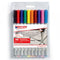 A wallet of 5 pens with metal-framed roller nib and water based gel ink. The rubber grip is elastic and non-slip. A soft, light even flow particularly suited for writing and signing.